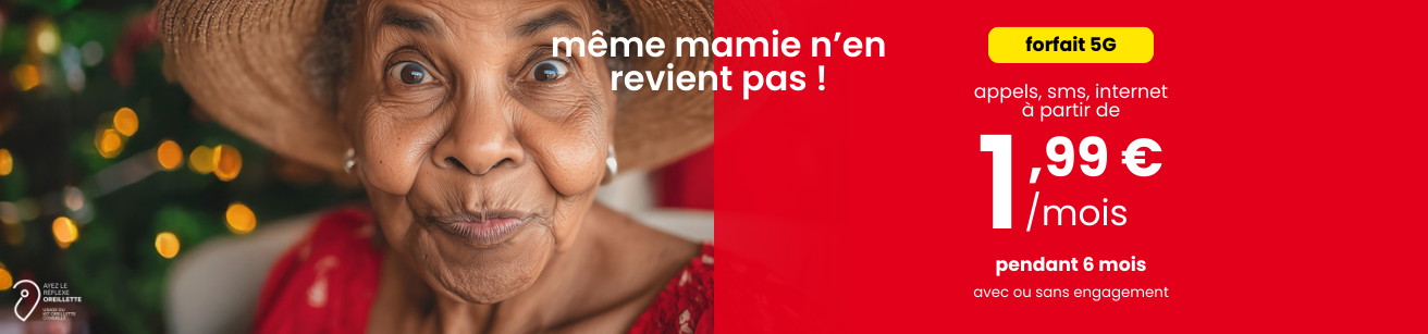 *Offre soumise à conditions jusqu’au 19/01/26 réservée aux abonnés BOX SFR (Fibre, ADSL) et abonnés forfaits mobile Grand Public SFR, sous réserve de leurs souscriptions au sein d’un même foyer et même sortant (même nom, même RIB) pour toute nouvelle souscription à partir du forfait Primo 5G (9,99€/mois, avec ou sans engagement 24 mois). Suite remise totale de 8€ pendant 6 mois – Remise Noël SFR Multi 2e mois. Remise totale 6€ (Remise Noël SFR Multi 2e mois). Réseau 5G : déploiement en cours. Sous réserve de couverture 5G, offre et terminal compatibles 5G.